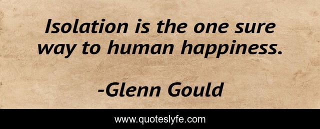 This page presents the quote "Isolation is the one sure way to human happiness.". Author of this quote is Glenn Gould. This quote is about isolation, way, human,.