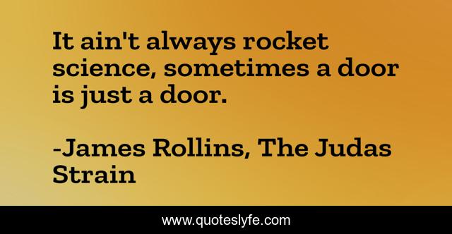 This page presents the quote "It ain't always rocket science, sometimes a door is just a door.". Author of this quote is James Rollins, The Judas Strain. This quote is about sigma-force, james-rollins, thriller, judas-strain,.