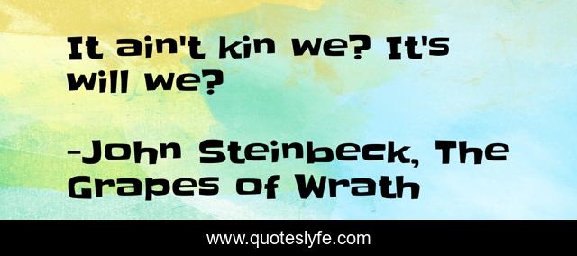 This page presents the quote "It ain't kin we? It's will we?". Author of this quote is John Steinbeck, The Grapes of Wrath. This quote is about john-steinbeck, mgg, the-grapes-of-wrath, choices,.