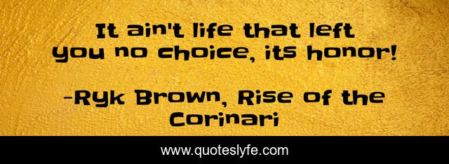 This page presents the quote "It ain't life that left you no choice, its honor!". Author of this quote is Ryk Brown, Rise of the Corinari. .