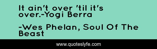 This page presents the quote "It ain't over 'til it's over.-Yogi Berra". Author of this quote is Wes Phelan, Soul Of The Beast. This quote is about adventure-fantasy, young-adult,.