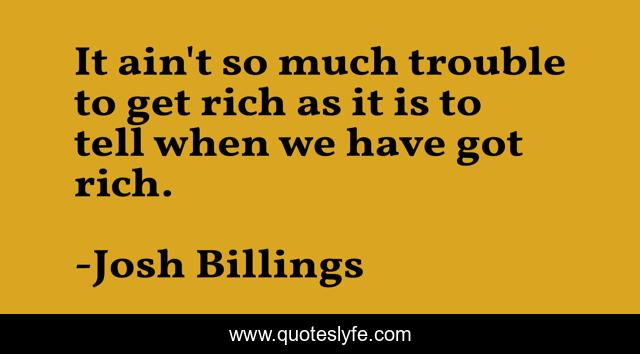 This page presents the quote "It ain't so much trouble to get rich as it is to tell when we have got rich.". Author of this quote is Josh Billings. .