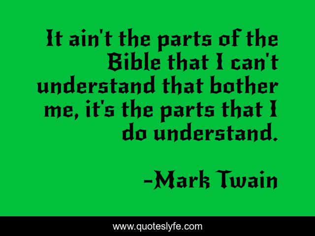 This page presents the quote "It ain't the parts of the Bible that I can't understand that bother me, it's the parts that I do understand.". Author of this quote is Mark Twain. .