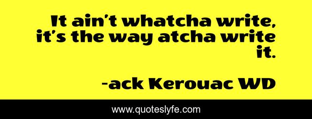 This page presents the quote "It ain’t whatcha write, it’s the way atcha write it.". Author of this quote is ack Kerouac WD. This quote is about humorous, witty,.