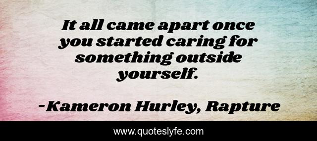 This page presents the quote "It all came apart once you started caring for something outside yourself.". Author of this quote is Kameron Hurley, Rapture. This quote is about caring, outside,.