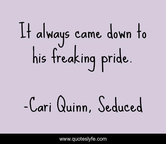 This page presents the quote "It always came down to his freaking pride.". Author of this quote is Cari Quinn, Seduced. This quote is about seduced, life, lost, seduce, always, welcome, it, quotes, oblivion,.