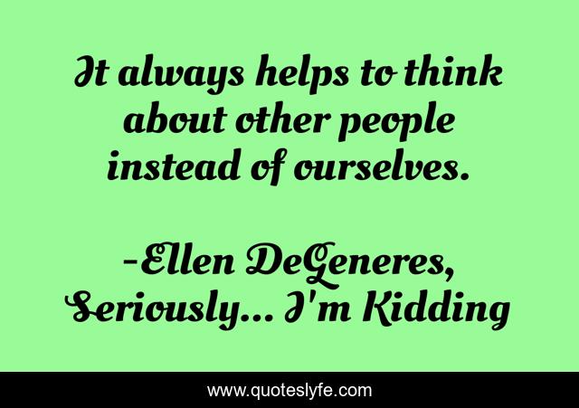 "Ellen DeGeneres, Seriously... I'm Kidding Quotes." Quoteslyfe.com, 2025. Fri. 05 Dec. 2025. <https://www.quoteslyfe.com/quote/It-always-helps-to-think-about-other-5113>.