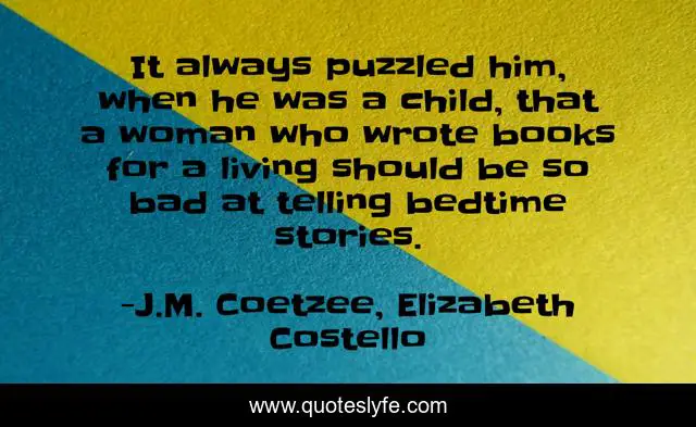 This page presents the quote "It always puzzled him, when he was a child, that a woman who wrote books for a living should be so bad at telling bedtime stories.". Author of this quote is J.M. Coetzee, Elizabeth Costello. .