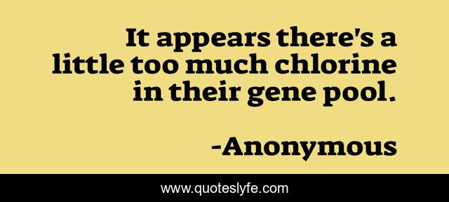 This page presents the quote "It appears there's a little too much chlorine in their gene pool.". Author of this quote is Anonymous. .