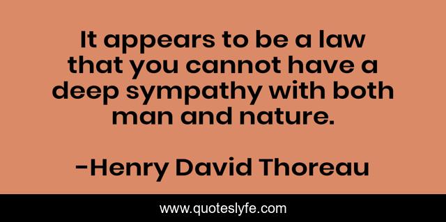This page presents the quote "It appears to be a law that you cannot have a deep sympathy with both man and nature.". Author of this quote is Henry David Thoreau. This quote is about environmental, deep, nature,.