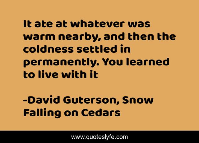 "David Guterson, Snow Falling on Cedars Quotes." Quoteslyfe.com, 2025. Tue. 09 Dec. 2025. <https://www.quoteslyfe.com/quote/It-ate-at-whatever-was-warm-nearby-124418>.