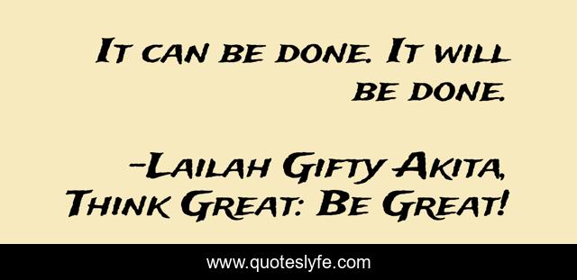 "Lailah Gifty Akita, Think Great: Be Great! Quotes." Quoteslyfe.com, 2025. Fri. 05 Dec. 2025. <https://www.quoteslyfe.com/quote/It-can-be-done-It-will-be-34655>.