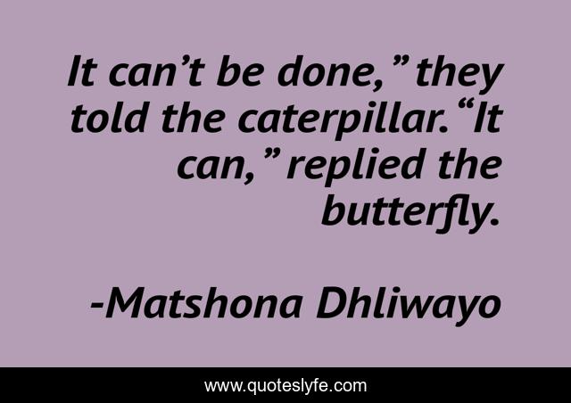 It can’t be done, ” they told the caterpillar. “It can, ” replied the butterfly.