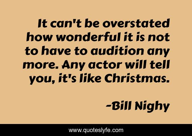 This page presents the quote "It can't be overstated how wonderful it is not to have to audition any more. Any actor will tell you, it's like Christmas.". Author of this quote is Bill Nighy. This quote is about wonderful, actor,.