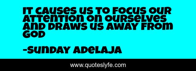 This page presents the quote "It causes us to focus our attention on ourselves and draws us away from God". Author of this quote is Sunday Adelaja. This quote is about prosperity, reality-of-life, draws, wealth, god, away, attention, riches, focus,.