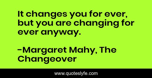 "Margaret Mahy, The Changeover Quotes." Quoteslyfe.com, 2025. Sun. 07 Dec. 2025. <https://www.quoteslyfe.com/quote/It-changes-you-for-ever-but-you-59554>.