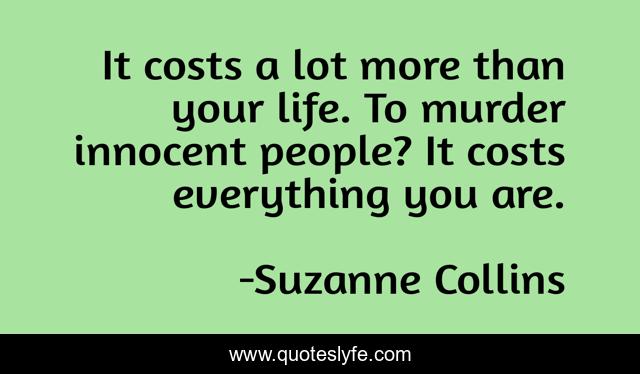 This page presents the quote "It costs a lot more than your life. To murder innocent people? It costs everything you are.". Author of this quote is Suzanne Collins. .