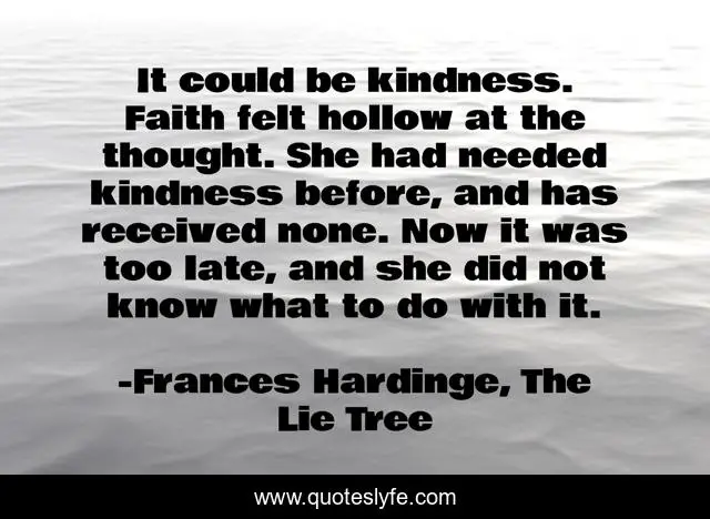 "Frances Hardinge, The Lie Tree Quotes." Quoteslyfe.com, 2025. Sat. 06 Dec. 2025. <https://www.quoteslyfe.com/quote/It-could-be-kindness-Faith-felt-hollow-122603>.