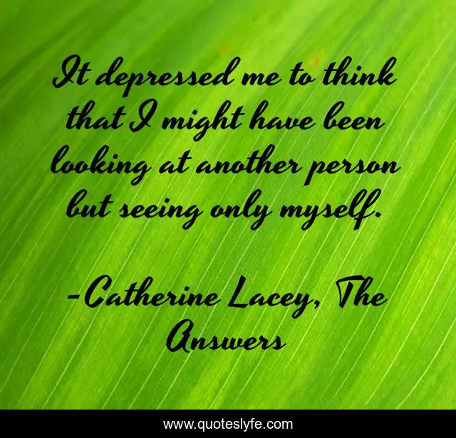 This page presents the quote "It depressed me to think that I might have been looking at another person but seeing only myself.". Author of this quote is Catherine Lacey, The Answers. This quote is about metaphor, catherine-lacey, the-answers,.