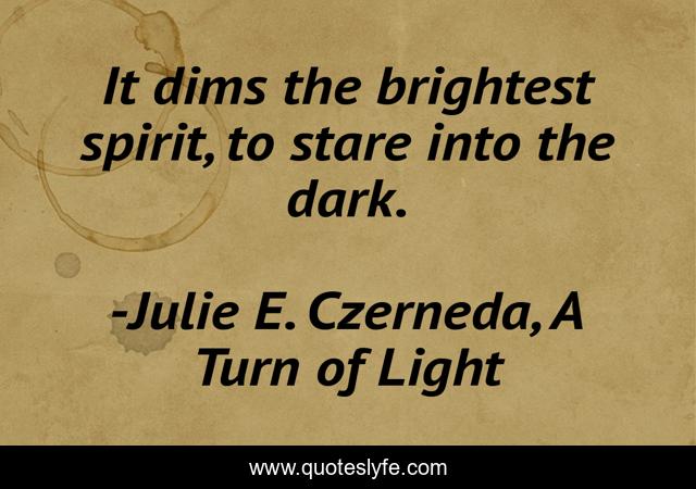 This page presents the quote "It dims the brightest spirit, to stare into the dark.". Author of this quote is Julie E. Czerneda, A Turn of Light. This quote is about light, darkness, spirit,.
