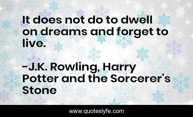 This page presents the quote "It does not do to dwell on dreams and forget to live.". Author of this quote is J.K. Rowling, Harry Potter and the Sorcerer's Stone. This quote is about life, dreams,.