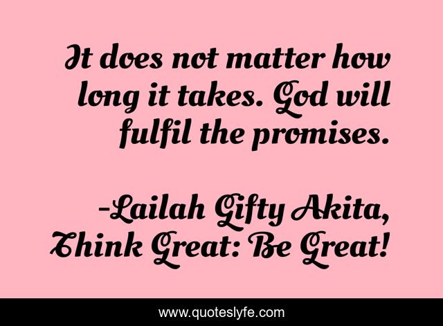"Lailah Gifty Akita, Think Great: Be Great! Quotes." Quoteslyfe.com, 2025. Sat. 06 Dec. 2025. <https://www.quoteslyfe.com/quote/It-does-not-matter-how-long-it-62636>.