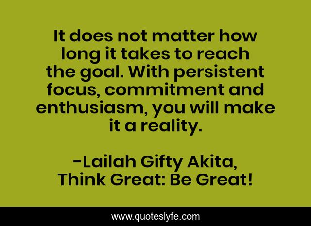 It does not matter how long it takes to reach the goal. With persistent focus, commitment and enthusiasm, you will make it a reality.