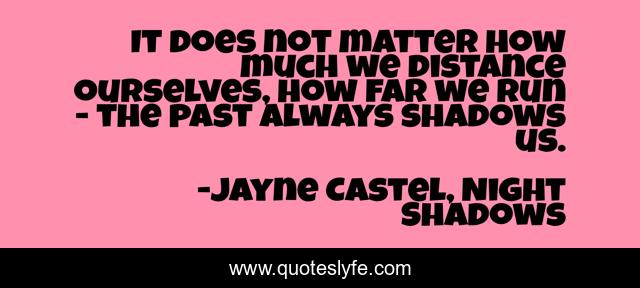 This page presents the quote "It does not matter how much we distance ourselves, how far we run - the past always shadows us.". Author of this quote is Jayne Castel, Night Shadows. This quote is about the-past-looking-to-the-future, the-past-never-ends, fate, the-past,.