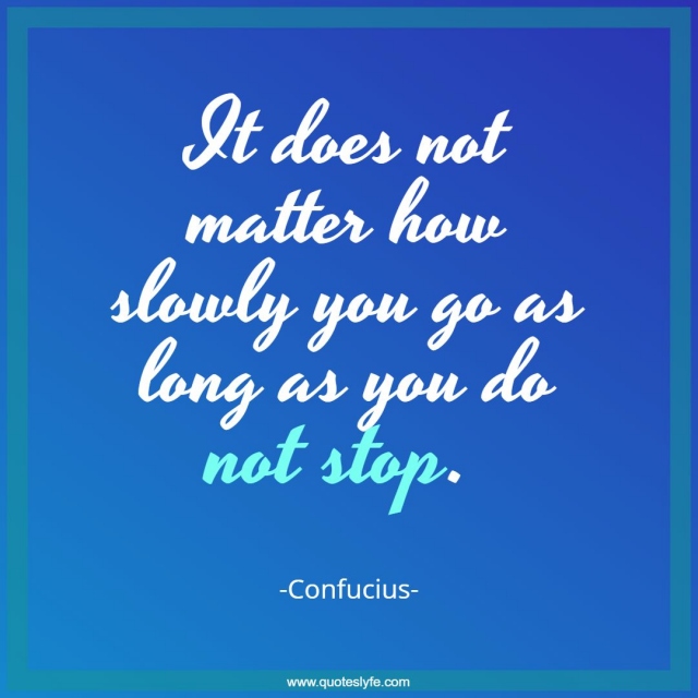It does not matter how slowly you go as long as you do not stop.
