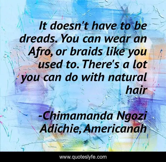 "Chimamanda Ngozi Adichie, Americanah Quotes." Quoteslyfe.com, 2025. Sun. 14 Dec. 2025. <https://www.quoteslyfe.com/quote/It-doesn-t-have-to-be-dreads-224969>.