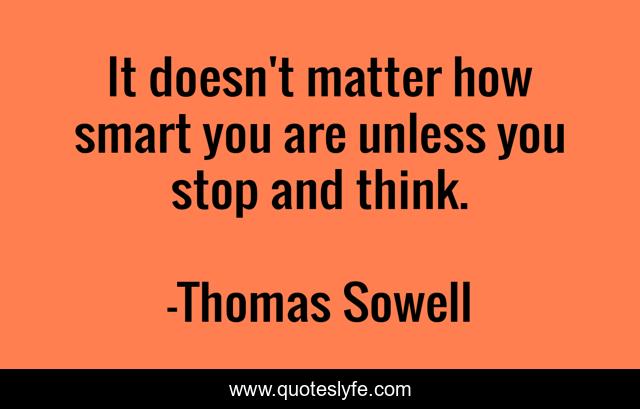 This page presents the quote "It doesn't matter how smart you are unless you stop and think.". Author of this quote is Thomas Sowell. This quote is about politics, philosophy,.