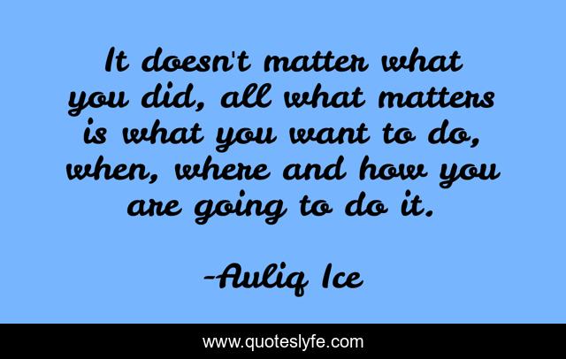 This page presents the quote "It doesn't matter what you did, all what matters is what you want to do, when, where and how you are going to do it.". Author of this quote is Auliq Ice. .