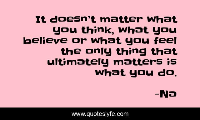 This page presents the quote "It doesn’t matter what you think, what you believe or what you feel the only thing that ultimately matters is what you do.". Author of this quote is Na. This quote is about thinking, enthusiasm, think, inspirational, wisdom,.