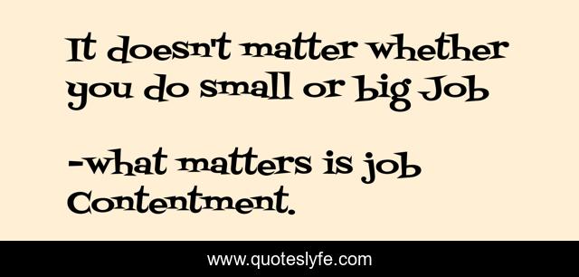 This page presents the quote "It doesn't matter whether you do small or big Job". Author of this quote is what matters is job Contentment.. .