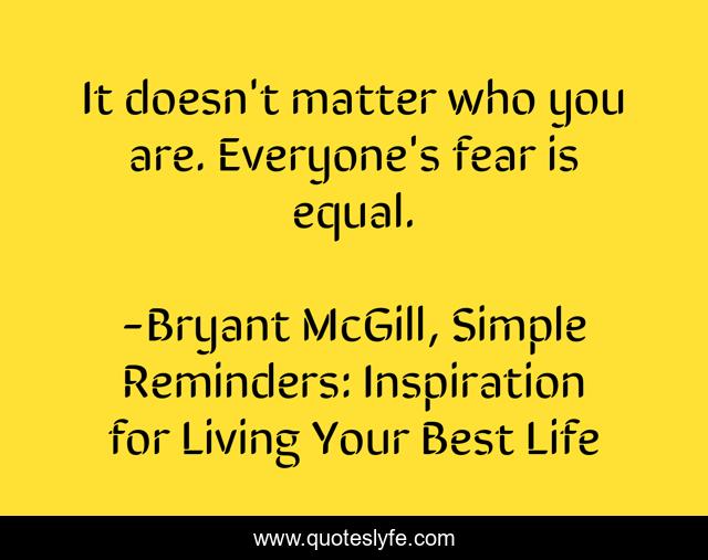 This page presents the quote "It doesn't matter who you are. Everyone's fear is equal.". Author of this quote is Bryant McGill, Simple Reminders: Inspiration for Living Your Best Life. This quote is about fear, equality,.