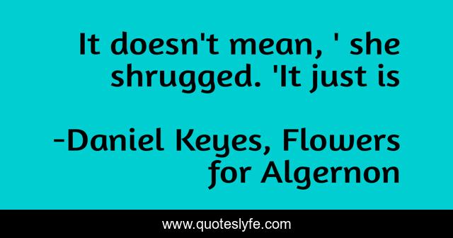 "Daniel Keyes, Flowers for Algernon Quotes." Quoteslyfe.com, 2025. Fri. 05 Dec. 2025. <https://www.quoteslyfe.com/quote/It-doesn-t-mean-she-shrugged-It-156852>.