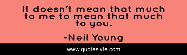 This page presents the quote "It doesn't mean that much to me to mean that much to you.". Author of this quote is Neil Young. This quote is about music, lyrics,.