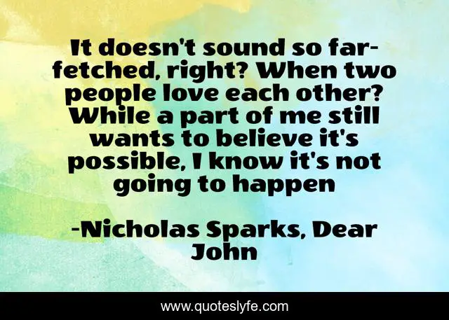 "Nicholas Sparks, Dear John Quotes." Quoteslyfe.com, 2025. Sat. 06 Dec. 2025. <https://www.quoteslyfe.com/quote/It-doesn-t-sound-so-far-fetched-159612>.