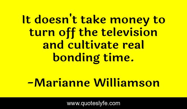 This page presents the quote "It doesn't take money to turn off the television and cultivate real bonding time.". Author of this quote is Marianne Williamson. This quote is about real, television, time,.