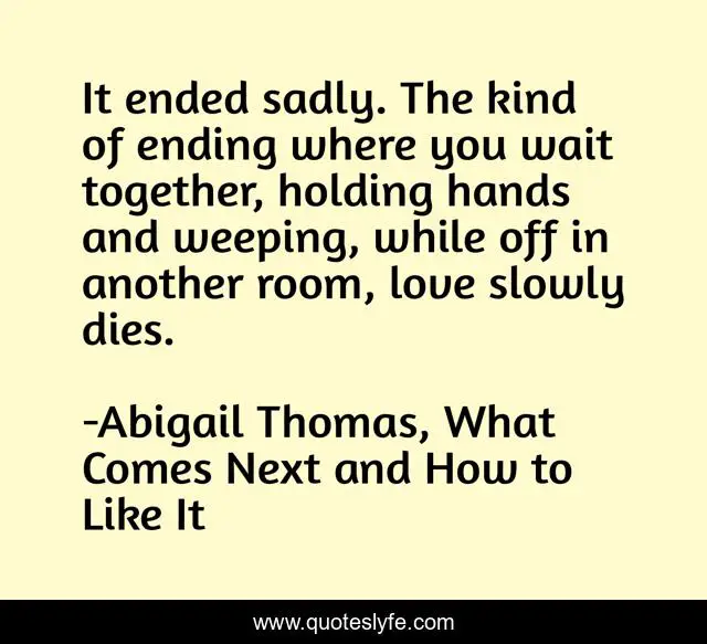 "Abigail Thomas, What Comes Next and How to Like It Quotes." Quoteslyfe.com, 2025. Fri. 05 Dec. 2025. <https://www.quoteslyfe.com/quote/It-ended-sadly-The-kind-of-ending-49303>.