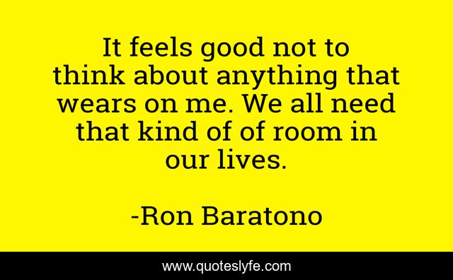 This page presents the quote "It feels good not to think about anything that wears on me. We all need that kind of of room in our lives.". Author of this quote is Ron Baratono. This quote is about thought, life,.