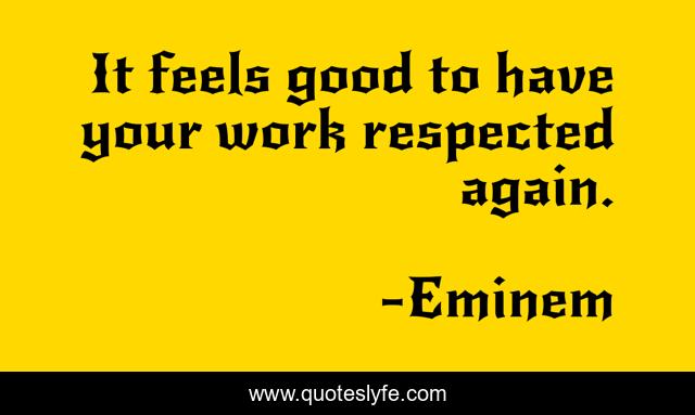 This page presents the quote "It feels good to have your work respected again.". Author of this quote is Eminem. This quote is about respected, again, good,.