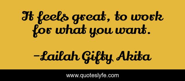 This page presents the quote "It feels great, to work for what you want.". Author of this quote is Lailah Gifty Akita. This quote is about joy, life, work,.