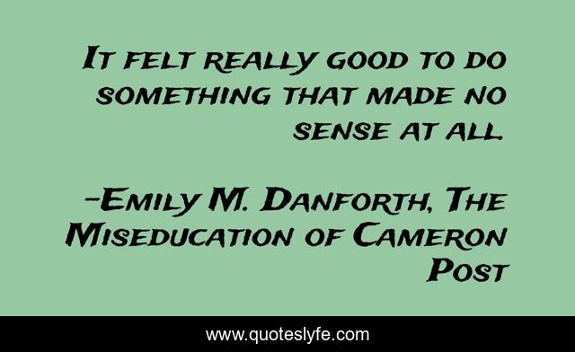 This page presents the quote "It felt really good to do something that made no sense at all.". Author of this quote is Emily M. Danforth, The Miseducation of Cameron Post. .