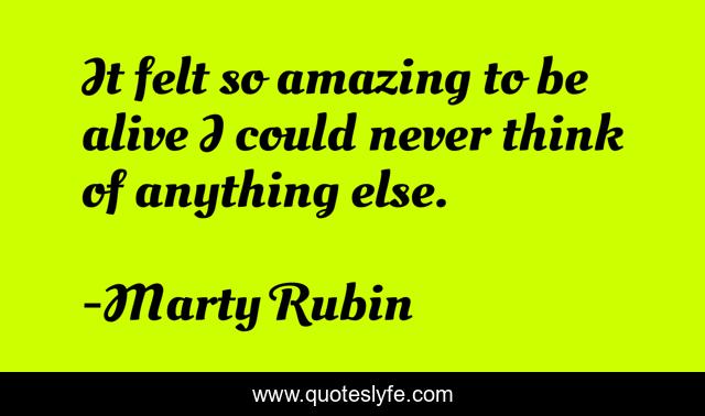 This page presents the quote "It felt so amazing to be alive I could never think of anything else.". Author of this quote is Marty Rubin. This quote is about thought, feeling-alive, astonishment, being-alive,.