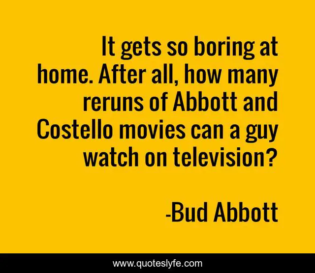 This page presents the quote "It gets so boring at home. After all, how many reruns of Abbott and Costello movies can a guy watch on television?". Author of this quote is Bud Abbott. This quote is about home, television, boring,.