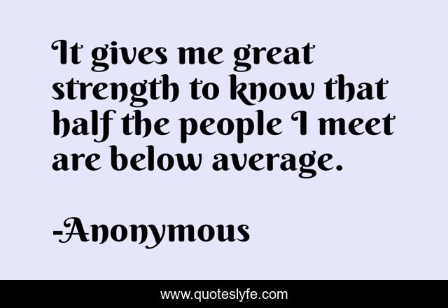 This page presents the quote "It gives me great strength to know that half the people I meet are below average.". Author of this quote is Anonymous. This quote is about vices, foibles,.