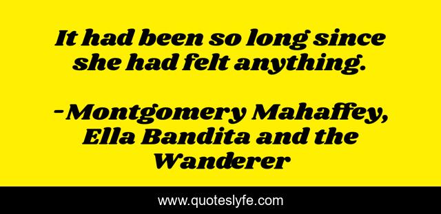This page presents the quote "It had been so long since she had felt anything.". Author of this quote is Montgomery Mahaffey, Ella Bandita and the Wanderer. This quote is about emotion, heart, love, loss, despair, heartbreaker, affection,.