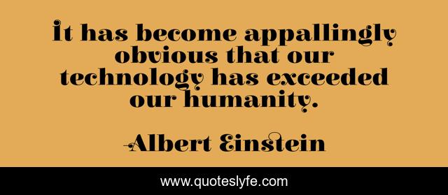This page presents the quote "It has become appallingly obvious that our technology has exceeded our humanity.". Author of this quote is Albert Einstein. This quote is about become, obvious, humanity,.
