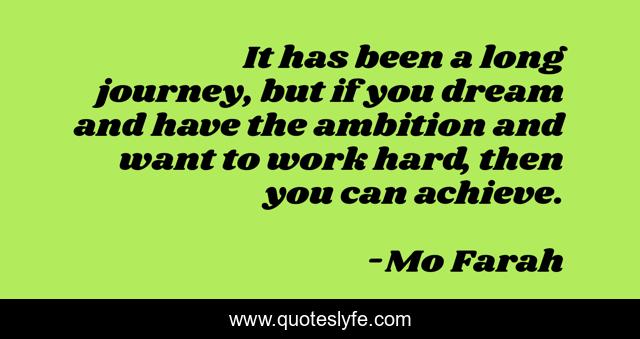 This page presents the quote "It has been a long journey, but if you dream and have the ambition and want to work hard, then you can achieve.". Author of this quote is Mo Farah. This quote is about journey, work hard, ambition,.
